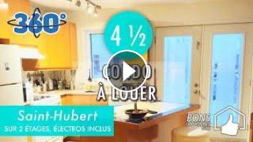 VISITE VIRTUELLE CONDO À LOUER / Saint-Hubert : Soyez premier à louer ce beau condo 4 ½ bien ensoleillé sur deux étages, au 2e et 3e étage, à quelques minutes de l’autoroute 30, commerces, parc de la Cité, IGA, arrêt d’autobus et encore plus. Stationnement extérieur et électros inclus.