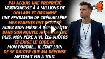 J'ai investi 4 millions de dollars dans un domaine à flanc de falaise et organisé une inauguration grandiose. Mes parents ont snobé l'événement pour assister au déménagement de mon frère. La vue des photos a réveillé les convoitises : mon père a sommé que je lui communique le code d'entrée... Il était loin d'imaginer que ma réplique sonnerait le glas.