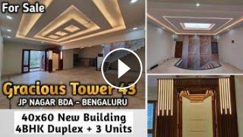 40x60 Independent Luxury Property For Sale, Codename Gracious Tower No.43, in JP Nagar, a very Unique Plan Property with a 4BHK Duplex Bungalow on Top of 3 Units of Spacious 3BHK Builder Floor Units, Central Location between Royal Meenakshi Mall and Forum Mall, Bangalore.